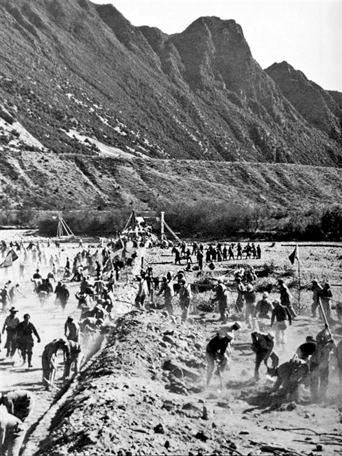 67年前,筑路军民修建青藏公路时的场景。(青藏兵站部供图)
