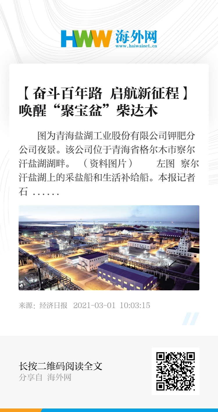 当年,老一辈盐湖人钻进卤水里,克服恶劣的自然环境,开挖了“英雄运河”;通过大胆创新,发明了“汽车拉火车”的运输方式,用汽车作牵引,拖拉着火车货厢运送矿石……青海盐湖工业股份有限公司钾肥分公司总经理田红斌说:“经过60多年的发展,现在察尔汗盐湖拥有大面积盐田,自主研发了光卤石晒矿专利技术、水采船重大专利技术,拥有反浮选冷结晶等多项核心专利技术。为响应国家号召,几十年如一日,艰苦奋斗,奠定了中国盐湖化工的基础。”