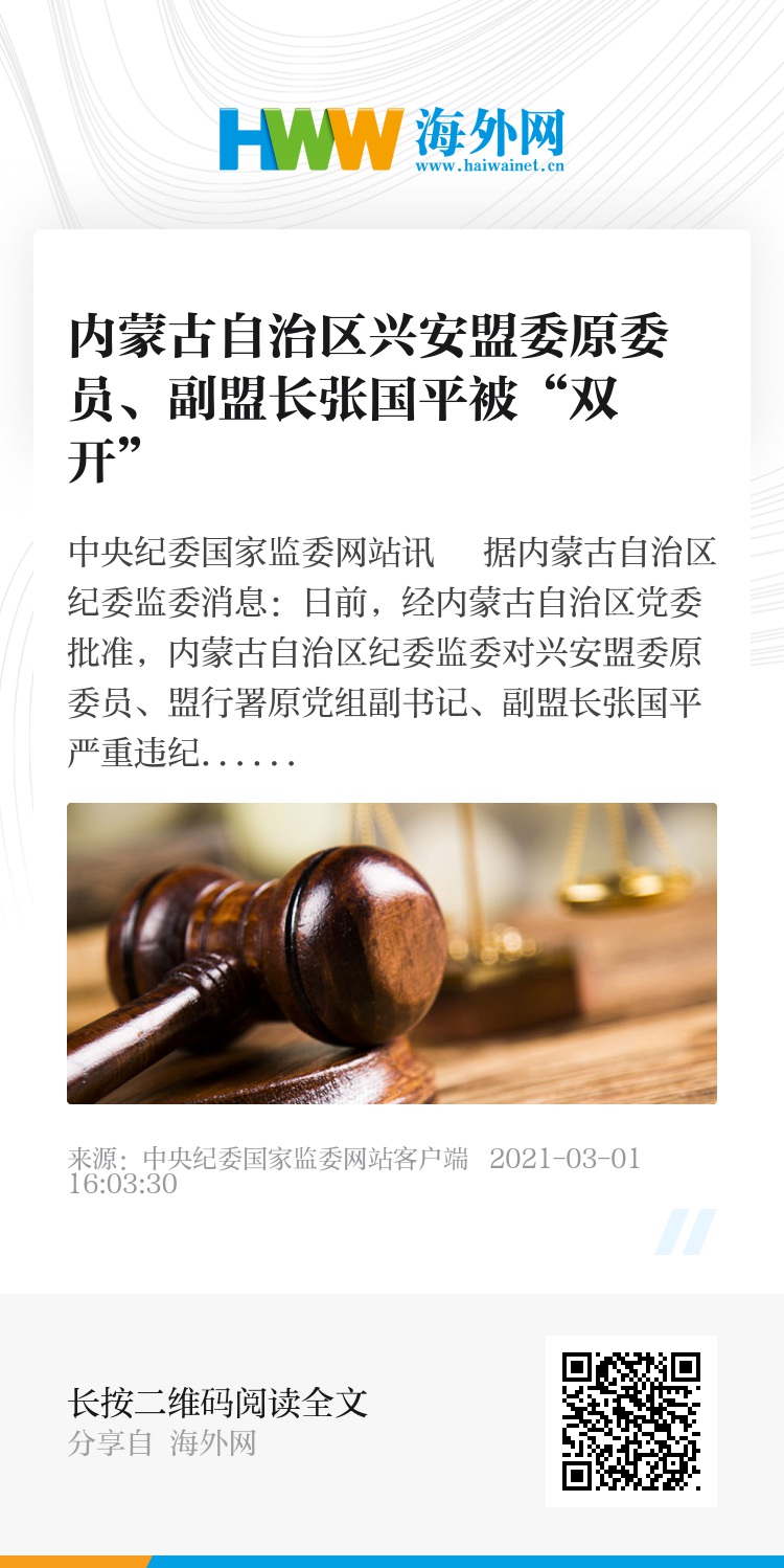 中央纪委国家监委网站讯 据内蒙古自治区纪委监委消息:日前,经内蒙古自治区党委批准,内蒙古自治区纪委监委对兴安盟委原委员、盟行署原党组副书记、副盟长张国平严重违纪违法问题进行了立案审查调查。