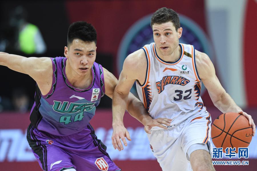 3月1日,上海久事队球员弗雷戴特(右)突破山东西王队球员陈培东的防守。