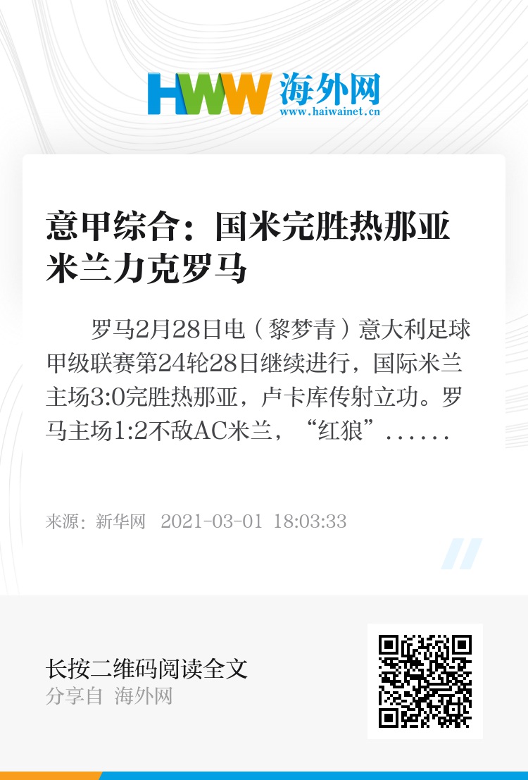 新华社罗马2月28日电(黎梦青)意大利足球甲级联赛第24轮28日继续进行,国际米兰主场3:0完胜热那亚,卢卡库传射立功。罗马主场1:2不敌AC米兰,“红狼”本赛季联赛首次主场告负。