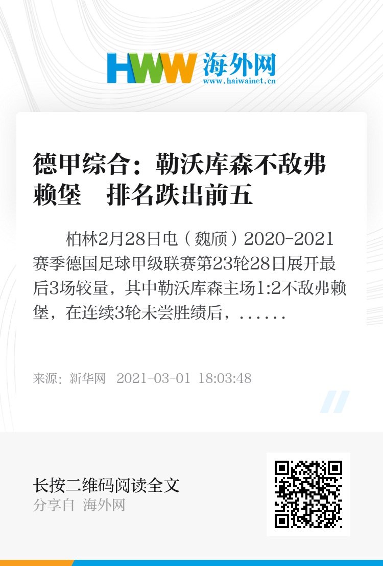 新华社柏林2月28日电(魏颀)2020-2021赛季德国足球甲级联赛第23轮28日展开最后3场较量,其中勒沃库森主场1:2不敌弗赖堡,在连续3轮未尝胜绩后,排名下滑到第六位。