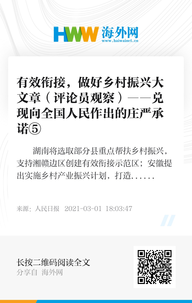 湖南将选取部分县重点帮扶乡村振兴,支持湘赣边区创建有效衔接示范区;安徽提出实施乡村产业振兴计划,打造千亿级产值农业产业化集群;四川围绕建设宜居宜业乡村,统筹县域城镇和村庄规划建设......在近段时间召开的地方两会上,乡村振兴成为关注点。