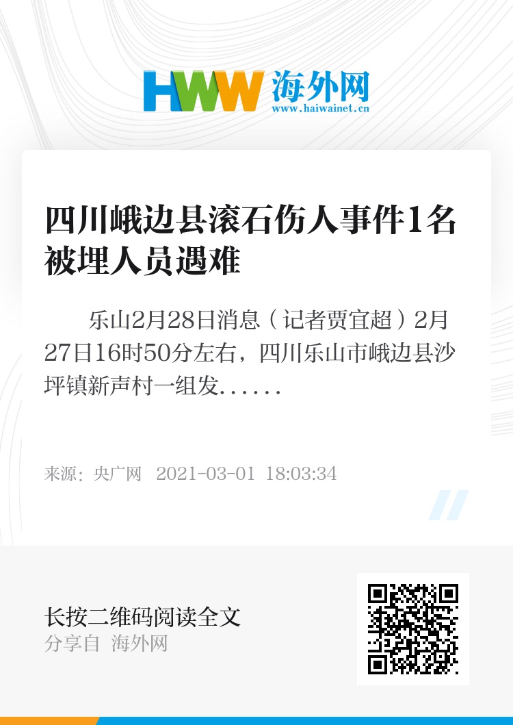 央广网乐山2月28日消息(记者贾宜超)2月27日16时50分左右,四川乐山市峨边县沙坪镇新声村一组发生滚石伤人事件,造成3户民房严重受损,3名人员受伤,1名人员被埋。经过全力搜救,抢险救援组于27日22时35分搜救出了被埋人员,经医务人员检查确认,已无生命迹象。