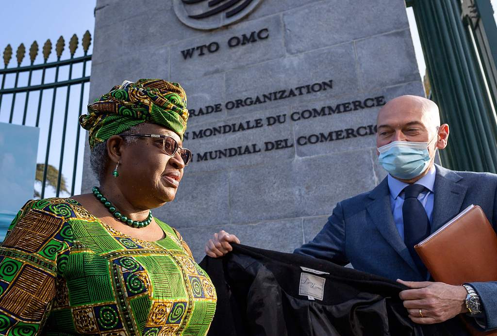 当地时间2021年3月1日,瑞士日内瓦,世界贸易组织(WTO)任命的新任总干事恩戈齐·奥孔乔-伊韦阿拉正式就职,结束总干事职位持续半年的“真空”状态。希望能为这个世贸组织注入新的活力、应对由流行病引发的全球经济危机。奥孔乔-伊韦阿拉的上任,开创了世贸组织1995年成立以来的两项“第一”:她是历史上首位来自非洲的总干事,也是首位女性总干事。她的任期将于2025年8月31日结束。图片来源:人民视觉