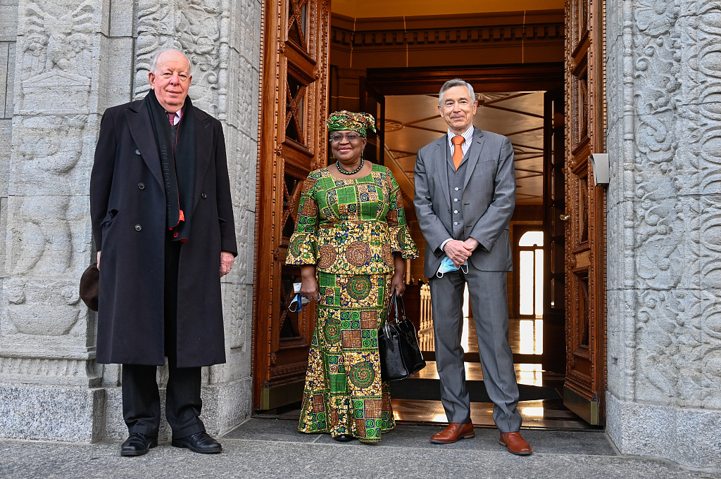 当地时间2021年3月1日,瑞士日内瓦,世界贸易组织(WTO)任命的新任总干事恩戈齐·奥孔乔-伊韦阿拉正式就职,结束总干事职位持续半年的“真空”状态。希望能为这个世贸组织注入新的活力、应对由流行病引发的全球经济危机。奥孔乔-伊韦阿拉的上任,开创了世贸组织1995年成立以来的两项“第一”:她是历史上首位来自非洲的总干事,也是首位女性总干事。她的任期将于2025年8月31日结束。图片来源:人民视觉