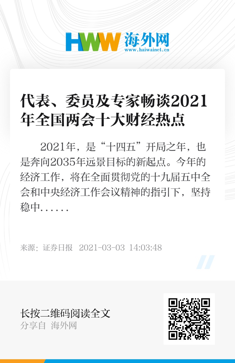2021年,是“十四五”开局之年,也是奔向2035年远景目标的新起点。今年的经济工作,将在全面贯彻党的十九届五中全会和中央经济工作会议精神的指引下,坚持稳中求进的工作总基调,立足新发展阶段,贯彻新发展理念,深化供给侧结构性改革,以改革创新为根本动力,推动高质量发展。即将开幕的全国两会将立足于落实这些要求展开广泛的讨论。作为国内主流财经证券媒体,以财经证券视角报道全国两会是《证券日报》的特色。今日,本报结合当前市场热点,选取了“十四五”、注册制、投资者保护、双循环、关键技术“卡脖子”、碳达峰碳中和、企业债务、房住不炒、新基建、国企国资改革等十个重点话题,从不同角度邀请代表、委员、专业人士进行畅谈,与社会各界、市场各方共享。