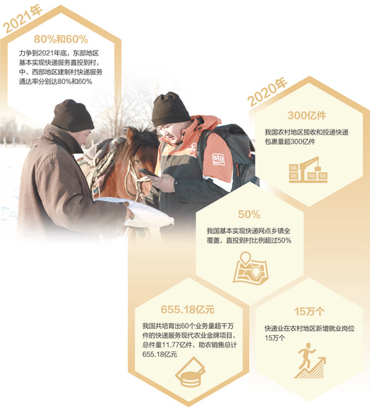 国家邮政局明确提出,继续深入推进“快递进村”,力争到2021年底,东部地区基本实现快递服务直投到村,中、西部地区建制村快递服务通达率分别达80%和60%。(记者 李心萍 祝佳祺)