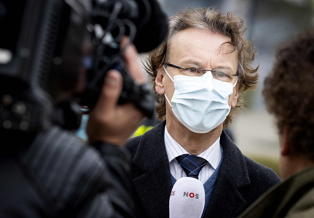 当地时间2021年3月2日,荷兰博芬卡斯珀尔,市长接受媒体采访。当地新冠病毒检测中心附近发生爆炸。目前暂无人员伤亡报道,调查仍在进行中。警方称,事故导致大楼窗户破碎,没有人受伤。警方还设置了警戒线,以保护现场进行调查。图片来源:人民视觉
