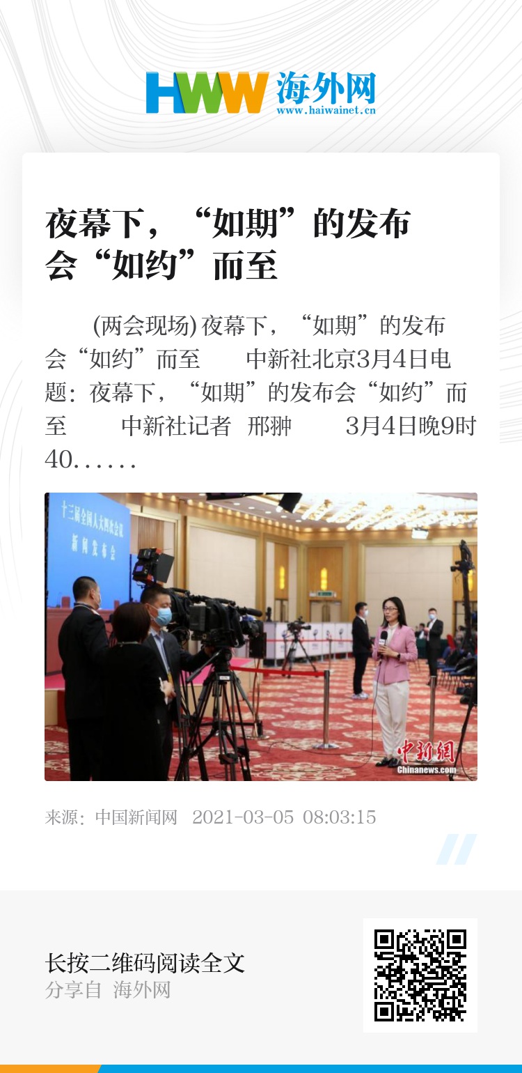 中新社北京3月4日电 题:夜幕下,“如期”的发布会“如约”而至