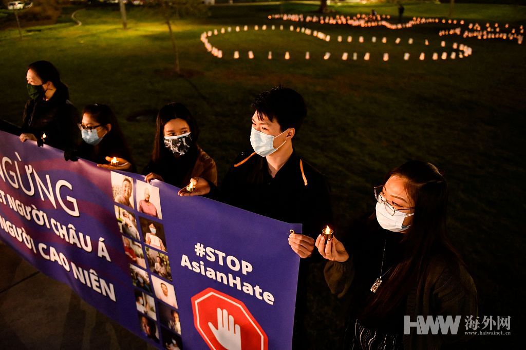 3月4日,美国加利福尼亚州,当地亚裔居民举行了纪念新冠肺炎死者的活动,同时呼吁美国社会停止针对亚裔的仇视行为。(供图:视觉中国)
