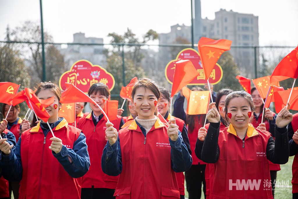 3月5日,安徽淮北,国网淮北供电公司女职工党员在开展庆“三八”巾帼情“同心向党”活动。当日,随着“三八”国际劳动妇女节到来,国网淮北供电公司组织女职工党员以同心向党为主题,在党旗下重温入党誓词,讲党史故事,追历史足迹,唱红色金曲。(供图:视觉中国)