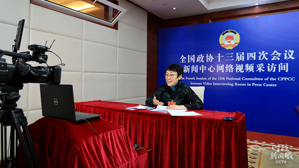 △3月4日上午,全国政协委员黄艳在网络视频采访间接受总台央视记者董倩专访。(总台央视记者魏帮军、刘洁拍摄)
