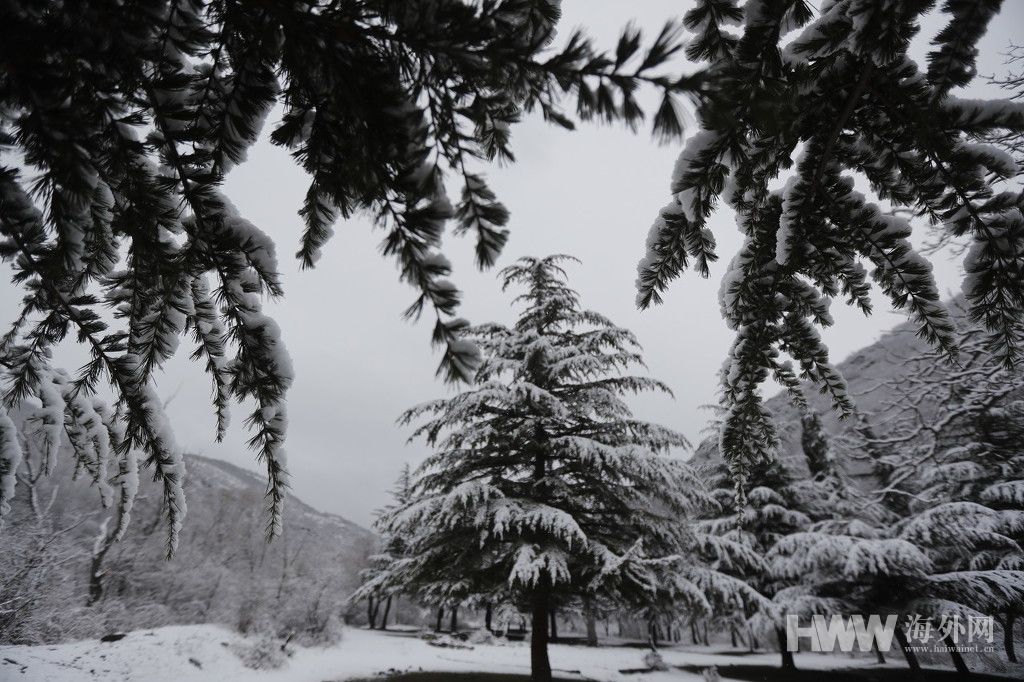 3月8日,格鲁吉亚第比利斯附近,当地迎来降雪,第比利斯国家公园的树木遭积雪覆盖。(供图:东方IC)