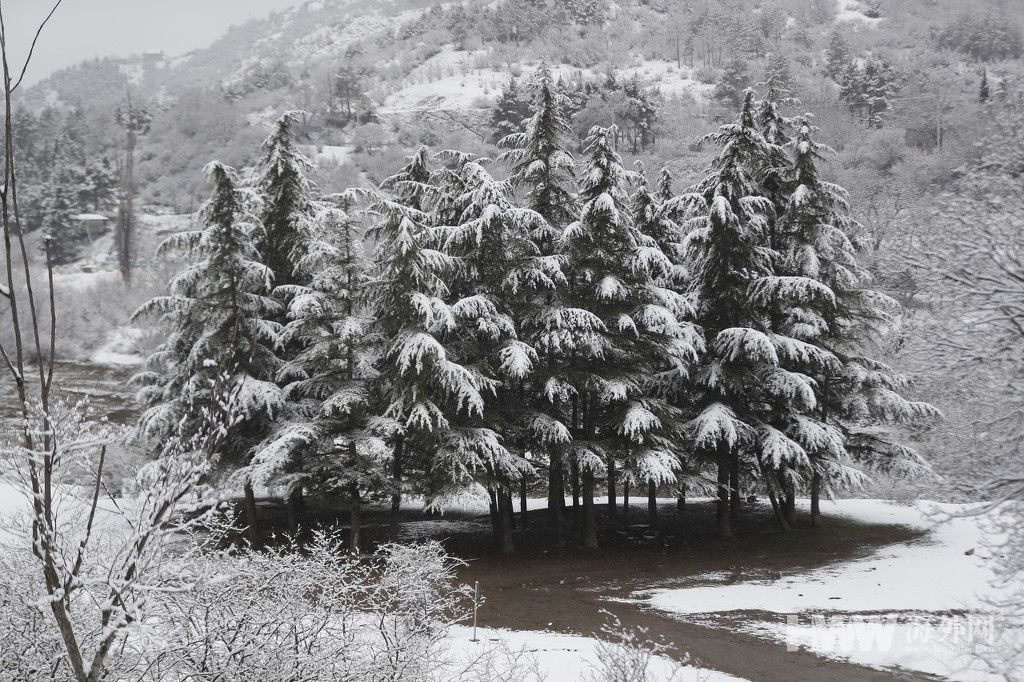 3月8日,格鲁吉亚第比利斯附近,当地迎来降雪,第比利斯国家公园的树木遭积雪覆盖。(供图:东方IC)