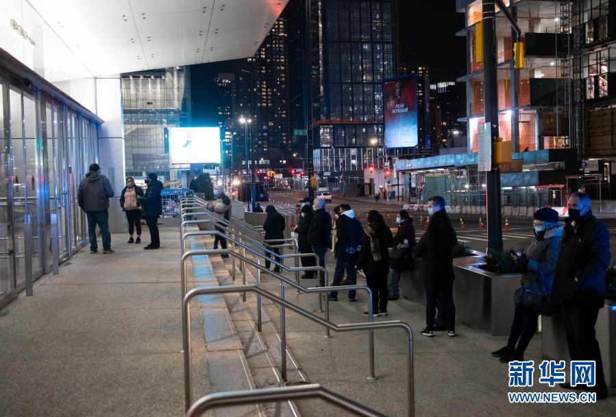 3月8日,美国纽约的居民在一处疫苗接种点外排队等待。新华社发 (郭克摄)