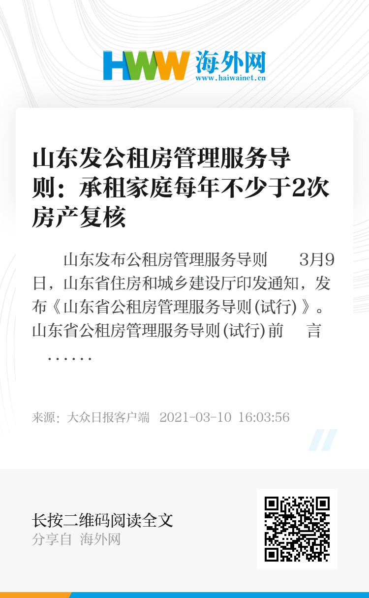3月9日,山东省住房和城乡建设厅印发通知,发布《山东省公租房管理服务导则(试行)》。