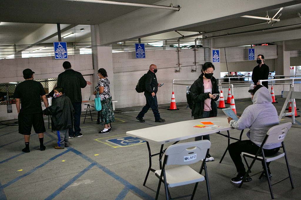 美国南加州大学内开设新冠疫苗临时接种点