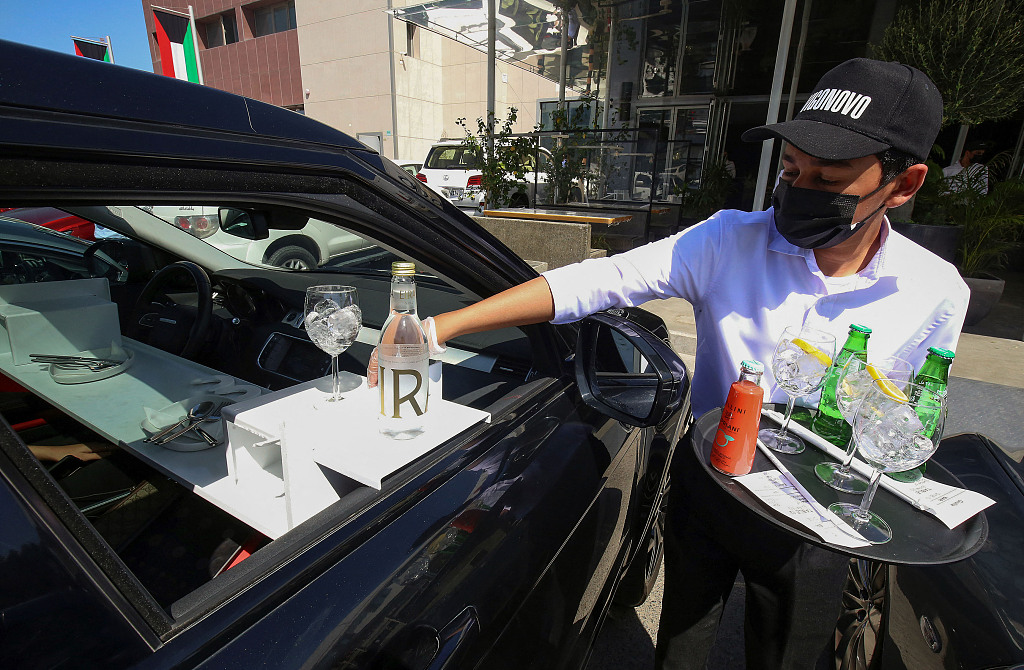 为应对新冠疫情 科威特餐厅推出车内用餐服务
