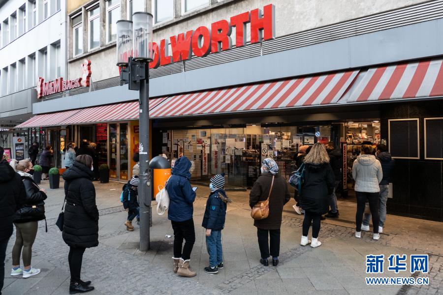 3月9日,人们在德国首都柏林排队等候进入一家商店。柏林部分非必需日用品零售商店在遵守防疫规定、限制客流等条件下恢复营业。新华社发(斯特凡·蔡茨摄)
