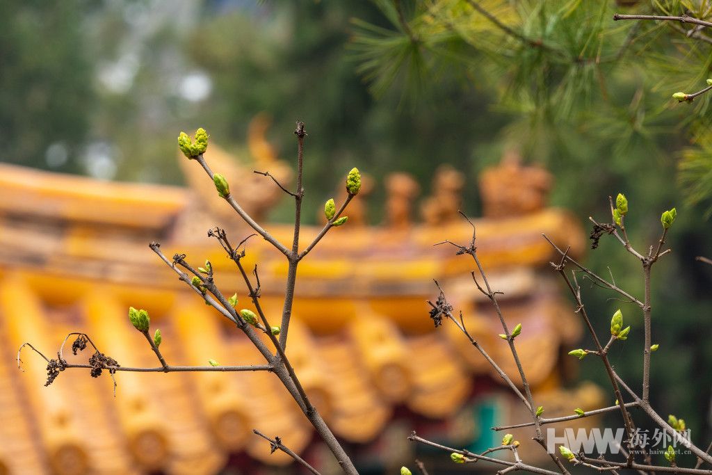 3月10日,北京,北京故宫御花园内,花枝吐出蓓蕾,生出嫩芽,春意盎然。蓓蕾、嫩芽,搭配着宫廷古建筑的背景,别有一番皇家花园的春天景致。(供图:东方IC)