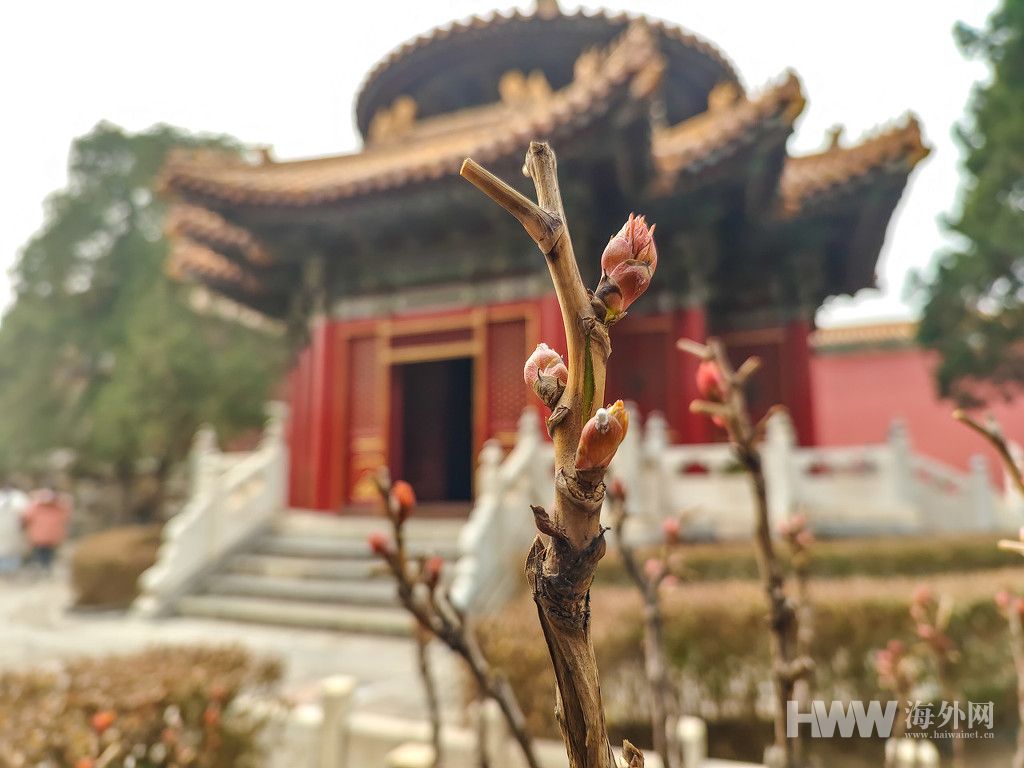 3月10日,北京,北京故宫御花园内,花枝吐出蓓蕾,生出嫩芽,春意盎然。蓓蕾、嫩芽,搭配着宫廷古建筑的背景,别有一番皇家花园的春天景致。(供图:东方IC)