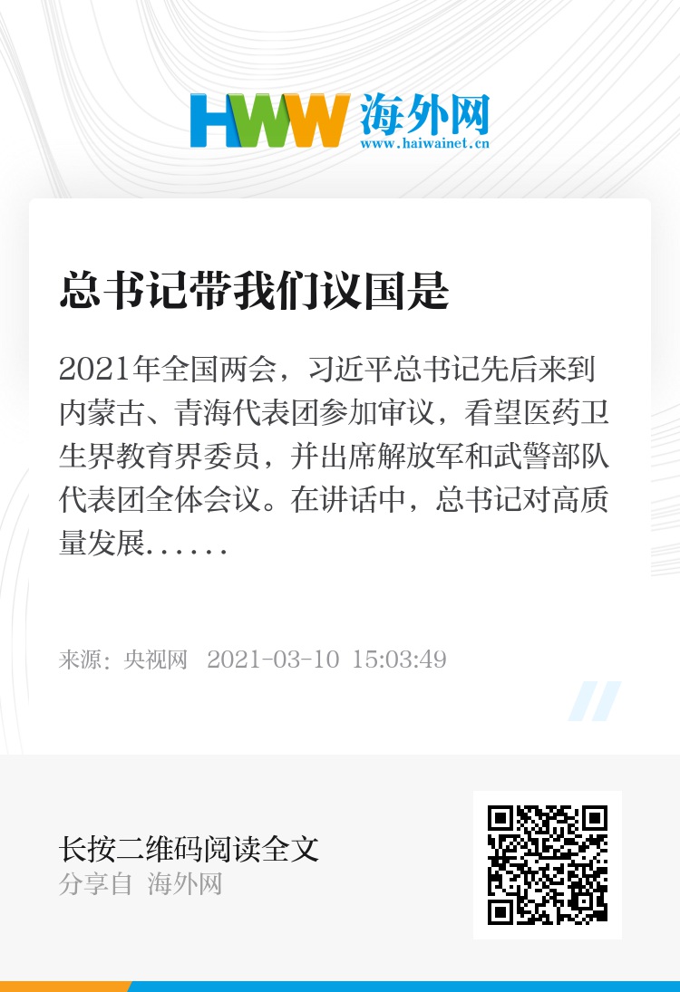 2021年全国两会,习近平总书记先后来到内蒙古、青海代表团参加审议,看望医药卫生界教育界委员,并出席解放军和武警部队代表团全体会议。在讲话中,总书记对高质量发展、生态保护以及教育等问题的一系列重磅表述,信息量很大。