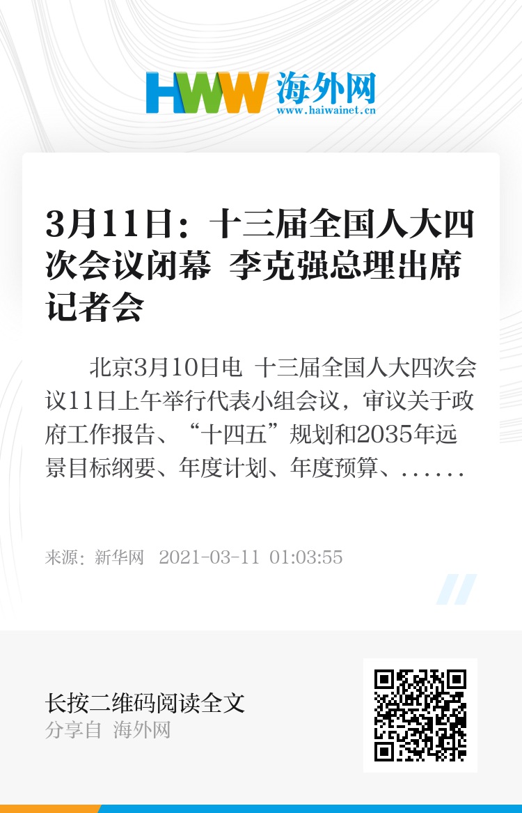 新华社北京3月10日电 十三届全国人大四次会议11日上午举行代表小组会议,审议关于政府工作报告、“十四五”规划和2035年远景目标纲要、年度计划、年度预算、全国人大常委会工作报告、最高人民法院工作报告、最高人民检察院工作报告的七个决议草案;11时召开主席团第四次会议。