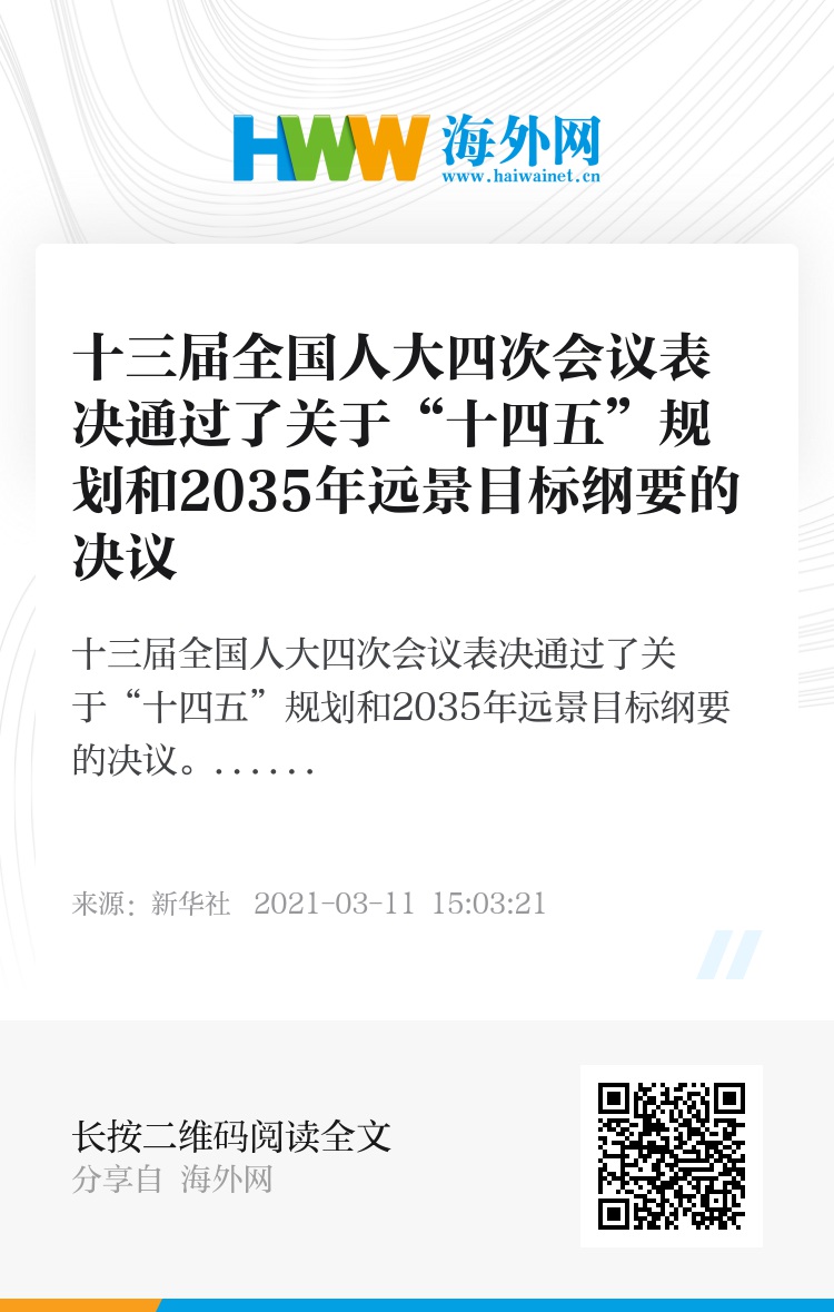 32016936,.十三届全国人大四次会议表决通过了关于“十四五”规划和2035年远景目标纲要的决议,.2021-03-11 15:12:39,.204301,.周璇