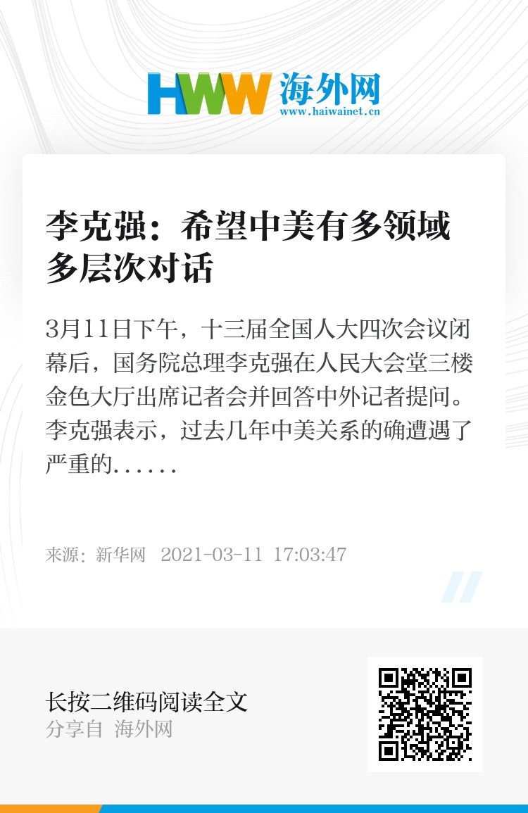 李克强表示,过去几年中美关系的确遭遇了严重的困难,给两国和世界都带来了不利的影响。中美作为世界上最大的发展中国家和最大的发达国家,和则两利、斗则俱伤。中美建交40多年了,风风雨雨,能越过坎坷向前走,还是因为符合世界发展趋势,符合两国的根本利益。我们希望按照习近平主席最近和拜登总统通话的精神,就是要尊重彼此的核心利益和重大关切,互不干涉内政和内部事务,秉持不冲突、不对抗、相互尊重、合作共赢的原则,推动两国关系向着健康稳定的方向发展。这既符合两国人民的利益,也是国际社会的期待。