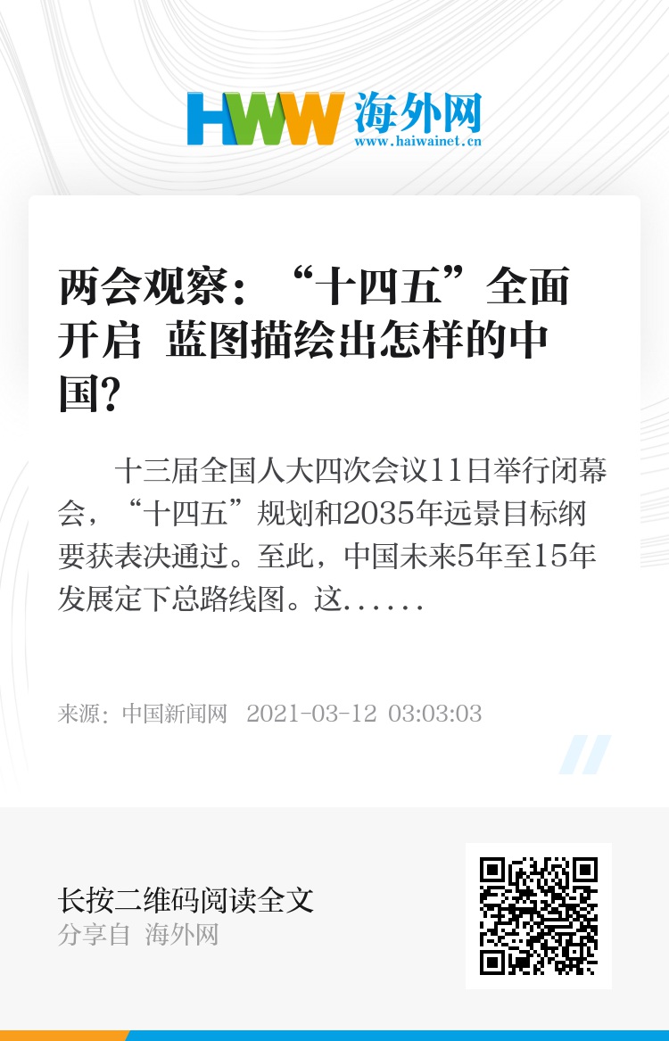 十三届全国人大四次会议11日举行闭幕会,“十四五”规划和2035年远景目标纲要获表决通过。至此,中国未来5年至15年发展定下总路线图。这是中国开启新征程的蓝图,更是国人共同的行动纲领。