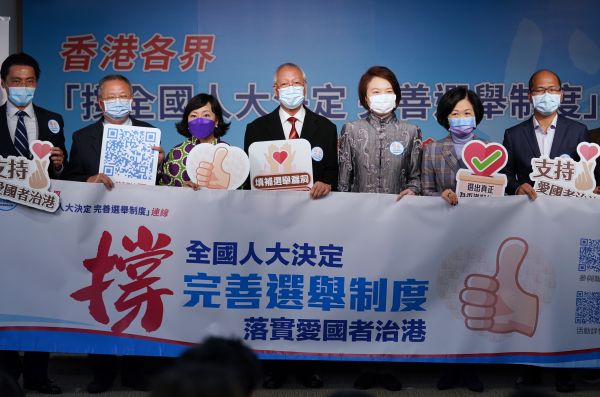 此外据香港商业电台网站3月11日报道,全国人大通过修订本港选举制度的决定,建制派成立“撑全国人大决定 完善选举制度”连线,会通过在线和街站,收集市民签名。