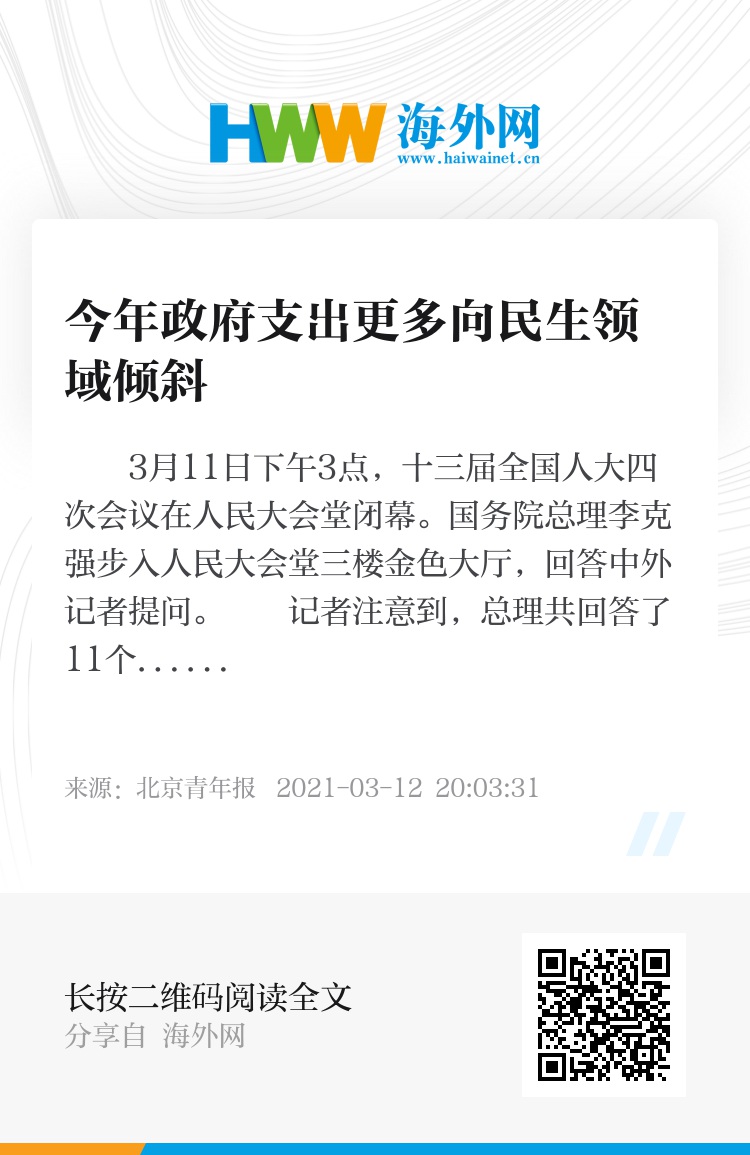 记者注意到,总理共回答了11个问题,涉及就业、新冠肺炎疫情、经济增长目标、门诊费用异地报销、香港选举、科技强国、中美关系、两岸关系、民生问题、新发展格局等。针对就医、子女教育、养老托幼等民生问题,李克强在记者会上表示,今年政府总支出比去年略有增加,要更多地向量大面广的民生领域倾斜,特别是义务教育和基本医疗。