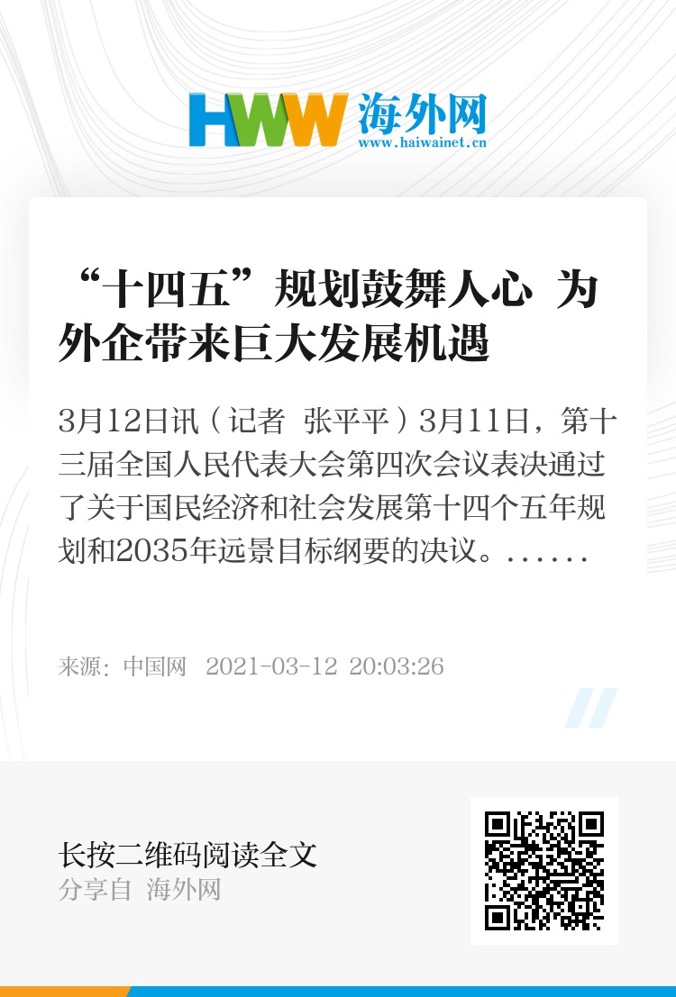 中国网3月12日讯(记者 张平平)3月11日,第十三届全国人民代表大会第四次会议表决通过了关于国民经济和社会发展第十四个五年规划和2035年远景目标纲要的决议。作为全面建成小康社会后开启全面建设现代化国家新征程的规划,“十四五”规划的通过具有里程碑意义,受到国内外舆论的广泛关注。