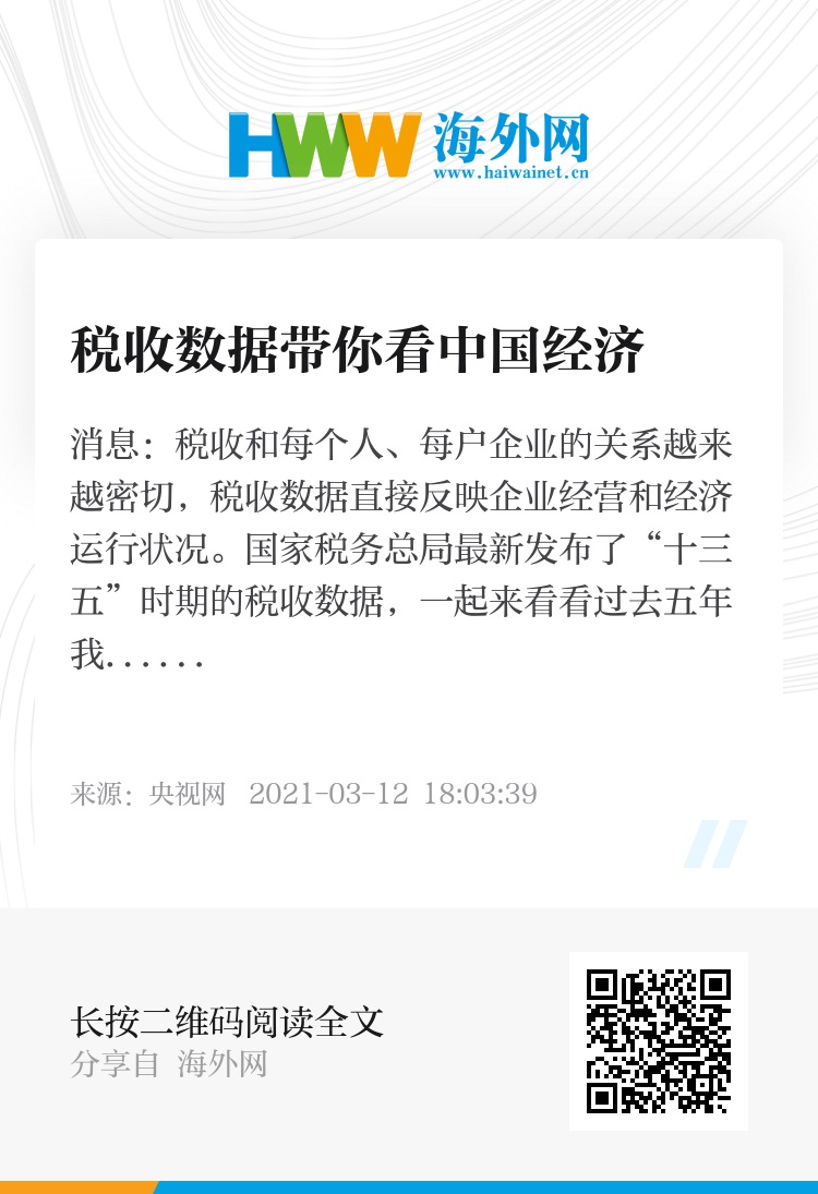央视网消息:税收和每个人、每户企业的关系越来越密切,税收数据直接反映企业经营和经济运行状况。国家税务总局最新发布了“十三五”时期的税收数据,一起来看看过去五年我国经济社会发生的变化。