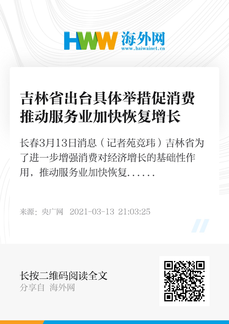 央广网长春3月13日消息(记者苑竞玮)吉林省为了进一步增强消费对经济增长的基础性作用,推动服务业加快恢复增长,近日出台了多条具体举措。
