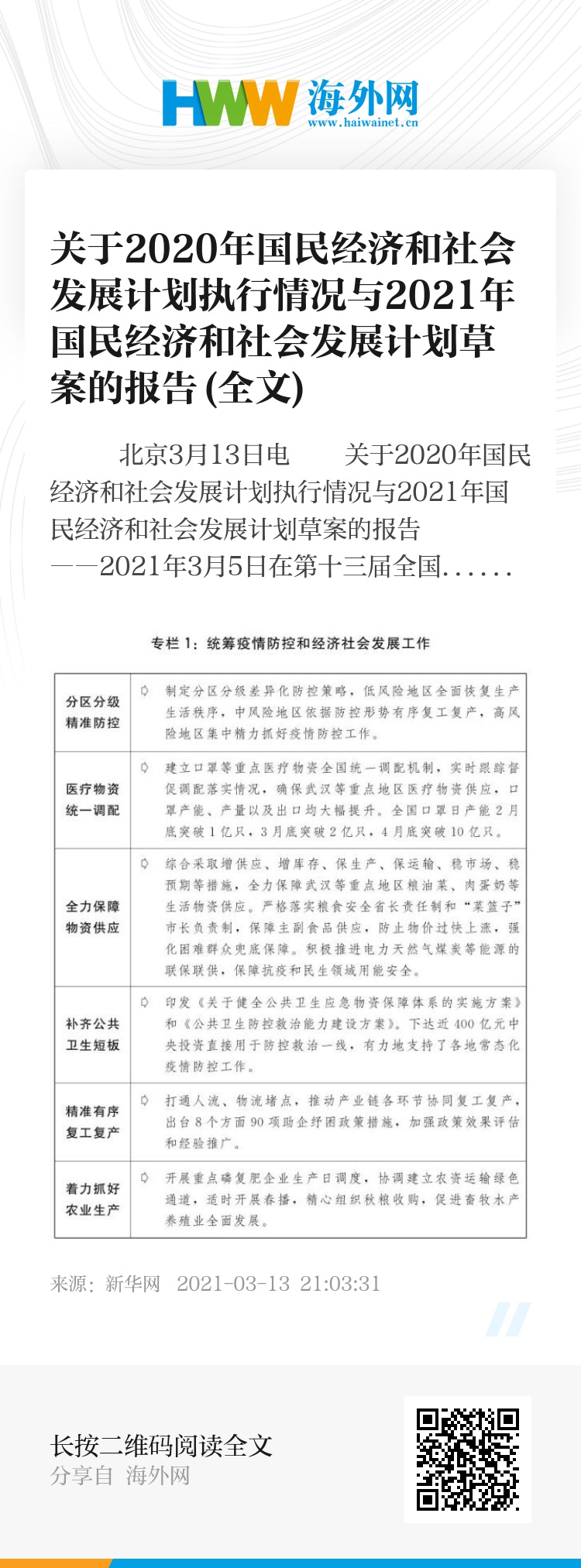 关于2020年国民经济和社会发展计划执行情况与2021年国民经济和社会发展计划草案的报告