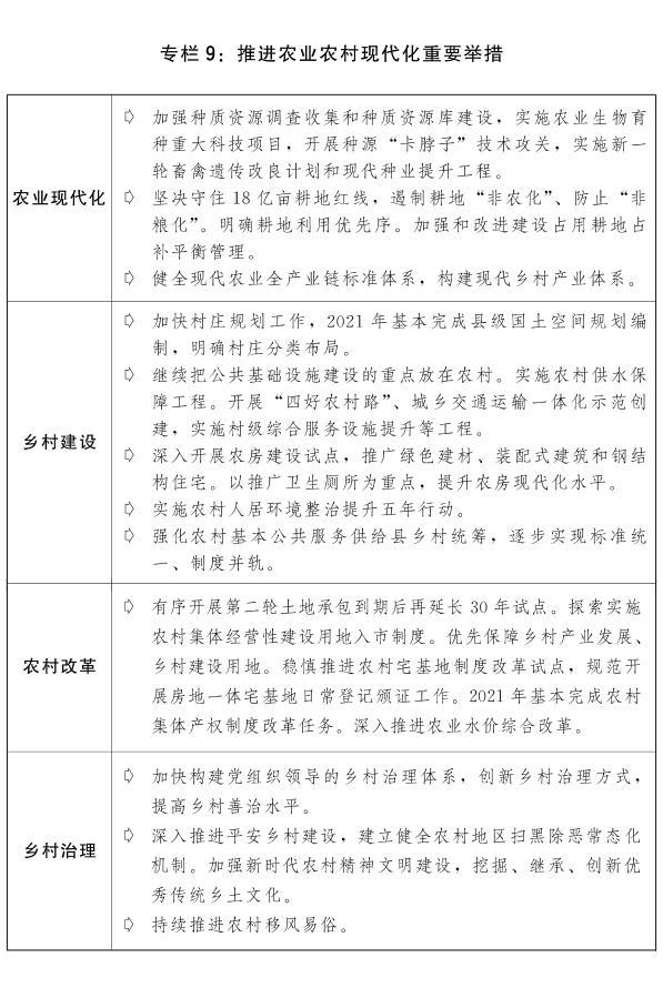 (六)全面推进乡村振兴,稳步推进农业农村现代化。坚决巩固脱贫攻坚成果,坚持农业农村优先发展方针,实行农业现代化与农村现代化一体设计、一并推进。