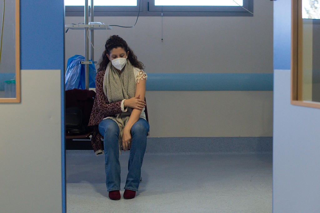 图为当地时间3月12日,西班牙卡塞雷斯省,医务人员在为人们接种阿斯利康疫苗。图片来源:视觉中国