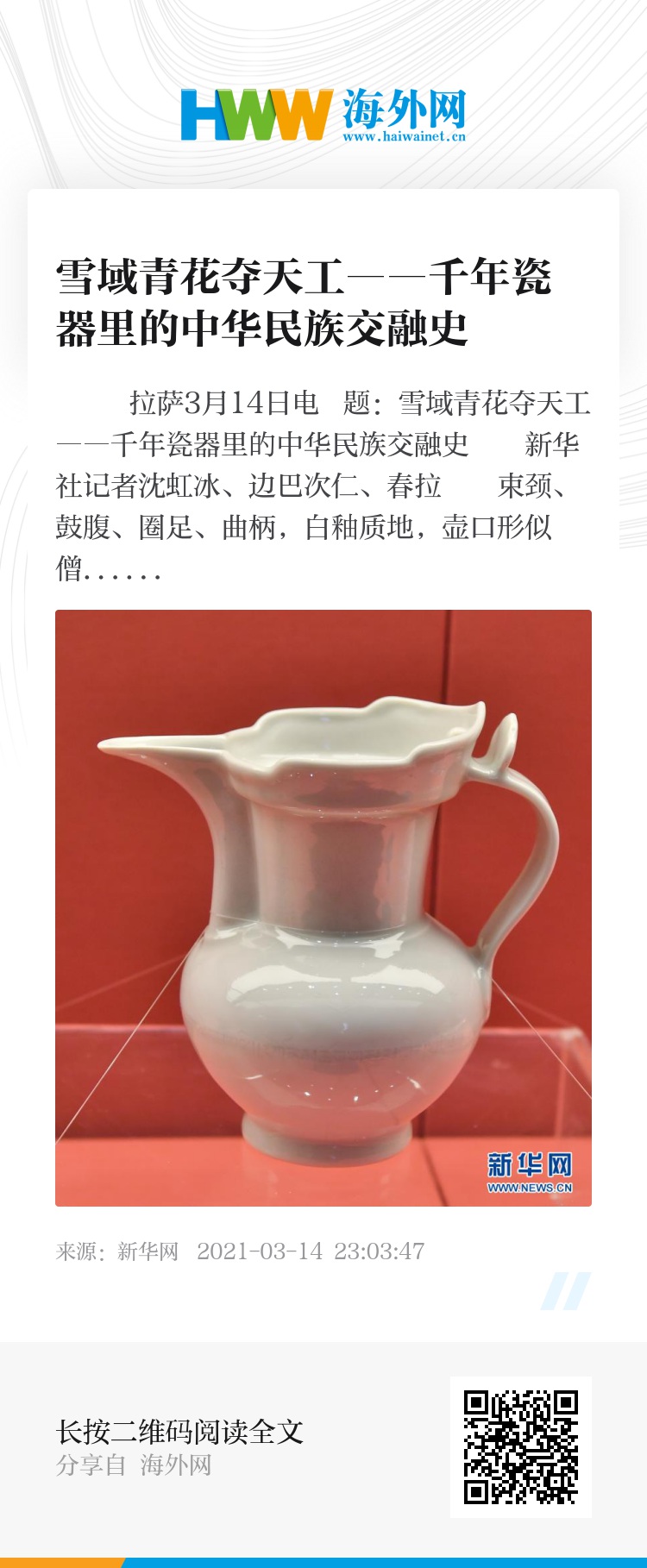 新华社拉萨3月14日电 题:雪域青花夺天工――千年瓷器里的中华民族交融史