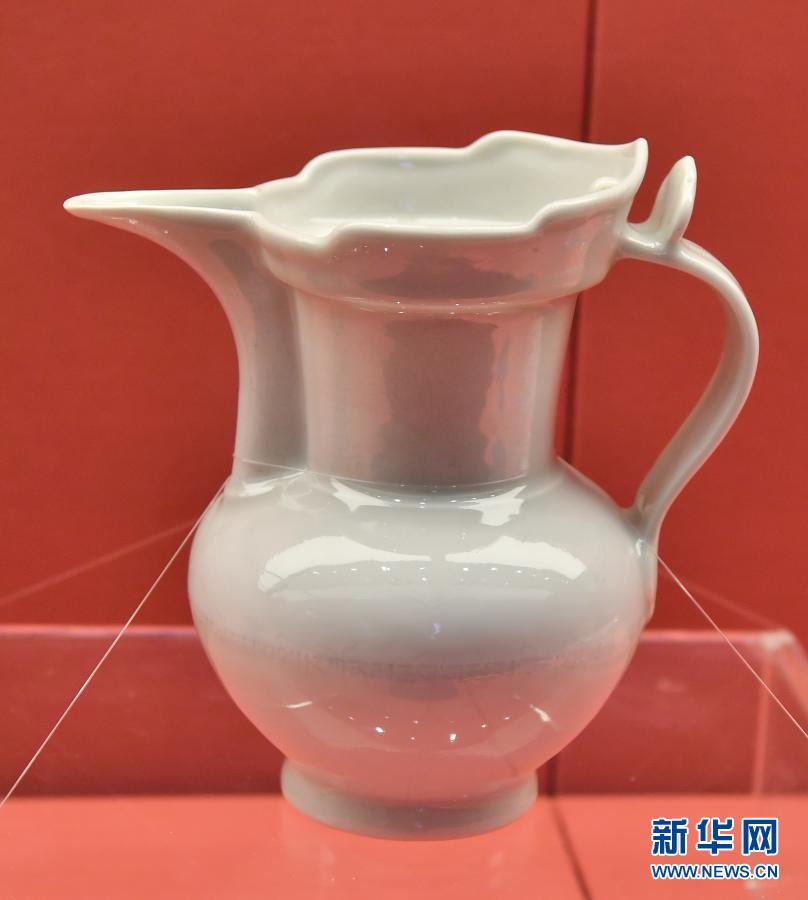 白釉暗花藏文纹僧帽壶(1月26日摄)。新华社记者 晋美多吉 摄