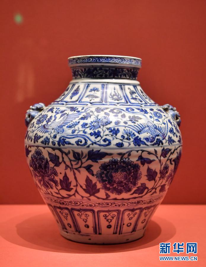 布达拉宫宫藏元代青花凤穿牡丹纹罐(1月26日摄)。新华社记者 晋美多吉 摄