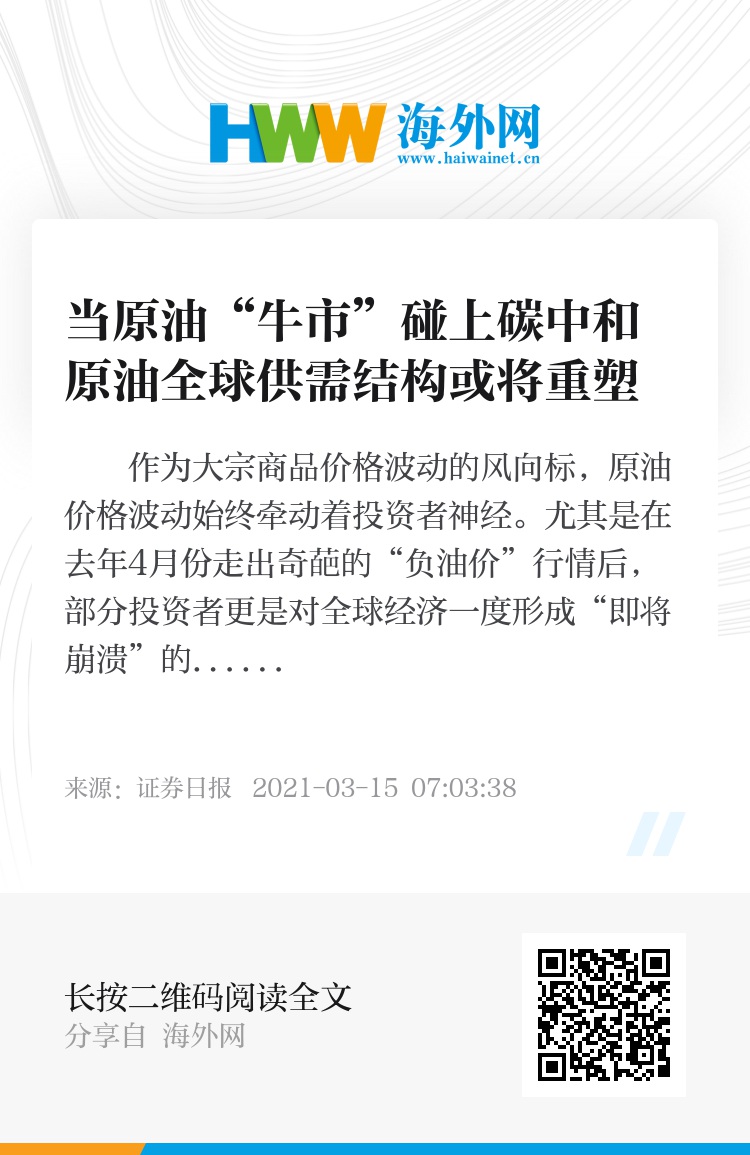 南华期货能化分析师章正泽向《证券日报》记者表示,随着5G和区块链等技术的应用,全球经济正在向数据化转型,数字经济作为新一轮工业革命的驱动力,将开启万物互联时代。作为传统工业化代表的原油产业链,也将更多拥抱数字经济,通过与数字化融合来重塑整个产业链。今年全国两会提出的“碳达峰、碳中和”政策,对原油价格长期走势有利空影响,但也不能过分夸大对原油实际需求的冲击。