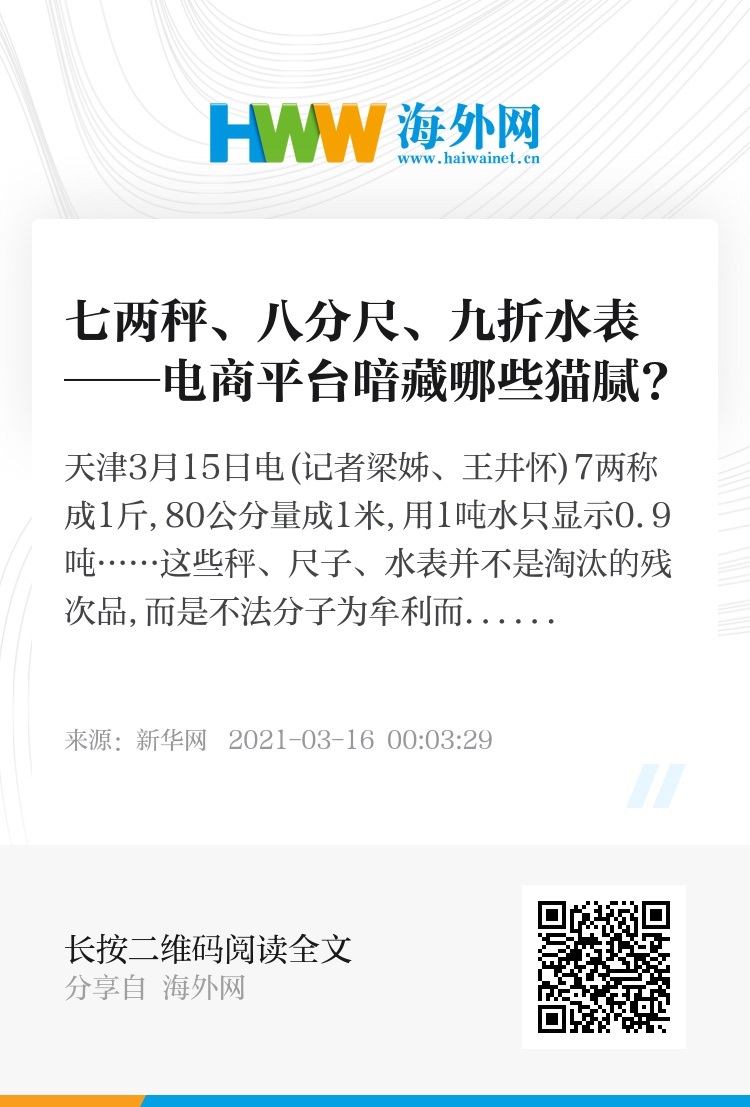 在“3·15”国际消费者权益日来临之际,记者采访了解到,这些坑害消费者、扰乱市场秩序的非法计量器具,潜藏在电商平台,以“暗语”形式宣传,并伺机出售。