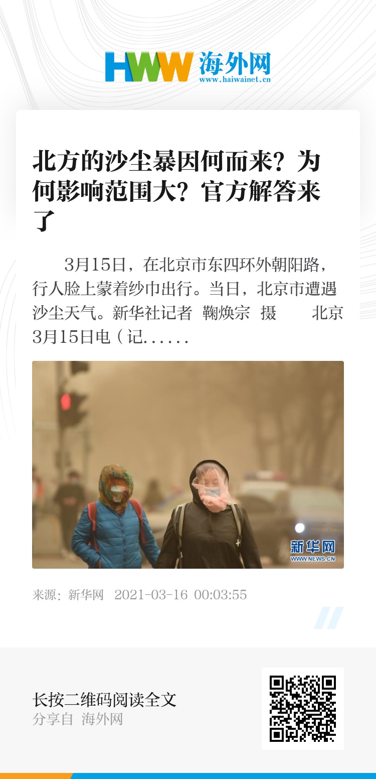新华网北京3月15日电(记者 袁晗 陈杰 实习生 王艺婷)今天我国北方地区出现了近十年最强的沙尘暴天气,那么此次沙尘暴的沙源来自哪里?为什么能够造成这么大范围的影响?中国气象局环境气象中心主任张碧辉介绍,这次沙尘暴天气的成因主要有两方面,一方面下垫面条件下,前期蒙古国包括西北地区气温偏高明显,普遍偏高5至8℃,蒙古国大部分地区近期降水稀少,地表条件比较利于沙尘天气发生。这两种条件配合得如此“好”,不是一种常态化的天气现象。