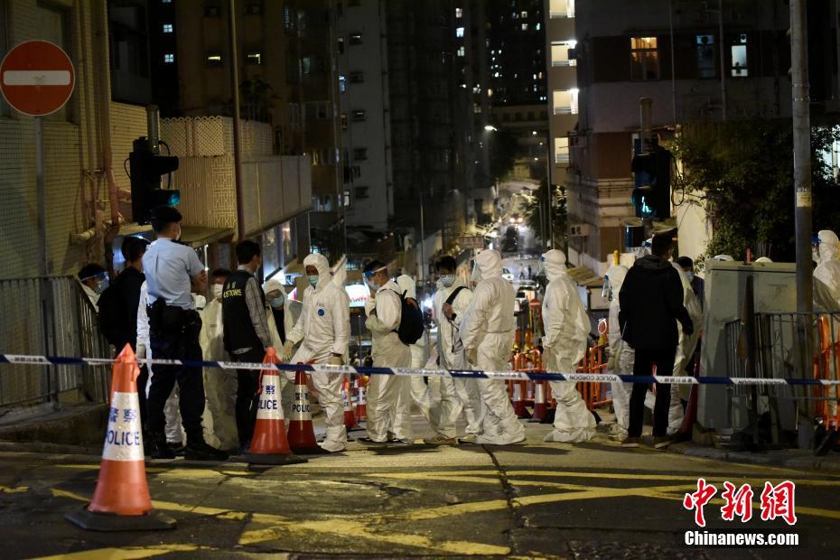 3月15日晚上,香港特区政府于西营盘指明“受限区域”,即西营盘万林阁、真光大厦、蔚峰及永祥大厦内的受检人士须留在其处所并接受强制检测。中新社记者 李志华 摄