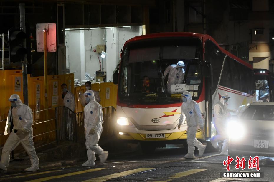 3月15日晚上,香港特区政府于西营盘指明“受限区域”,即西营盘万林阁、真光大厦、蔚峰及永祥大厦内的受检人士须留在其处所并接受强制检测。中新社记者 李志华 摄