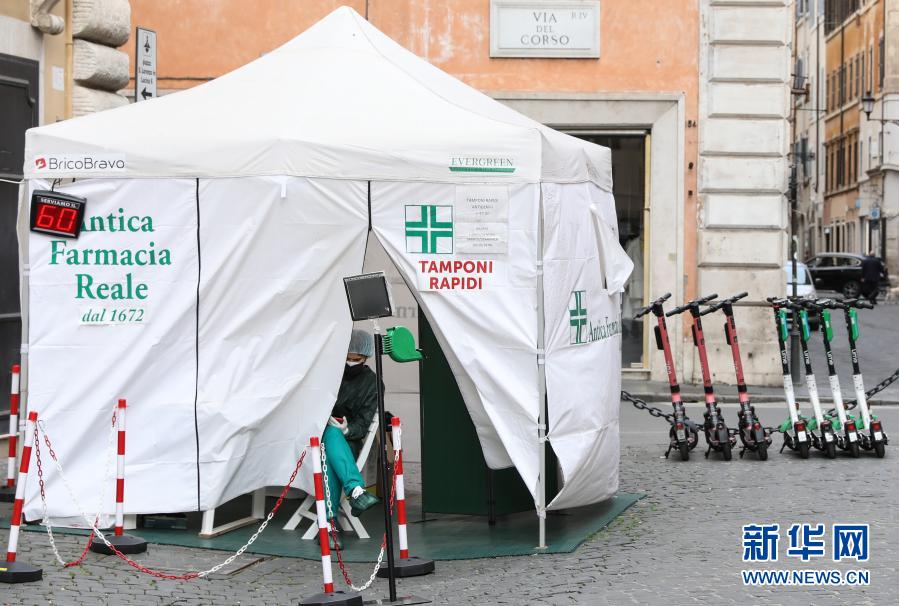 15日起,包括首都罗马在内的意大利半数以上地区被划分为疫情防控最高等级的红色区域。新华社记者 程婷婷 摄