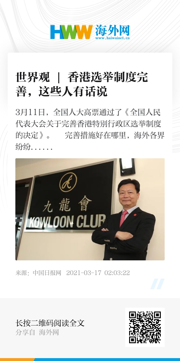 此外,一些新加坡媒体也对香港选举制度改革大加赞扬。当地比较有影响力的《联合早报》评论认为,香港选举制度改革有利于爱国力量掌握香港管治权,泛民主派空间将被极大压缩。