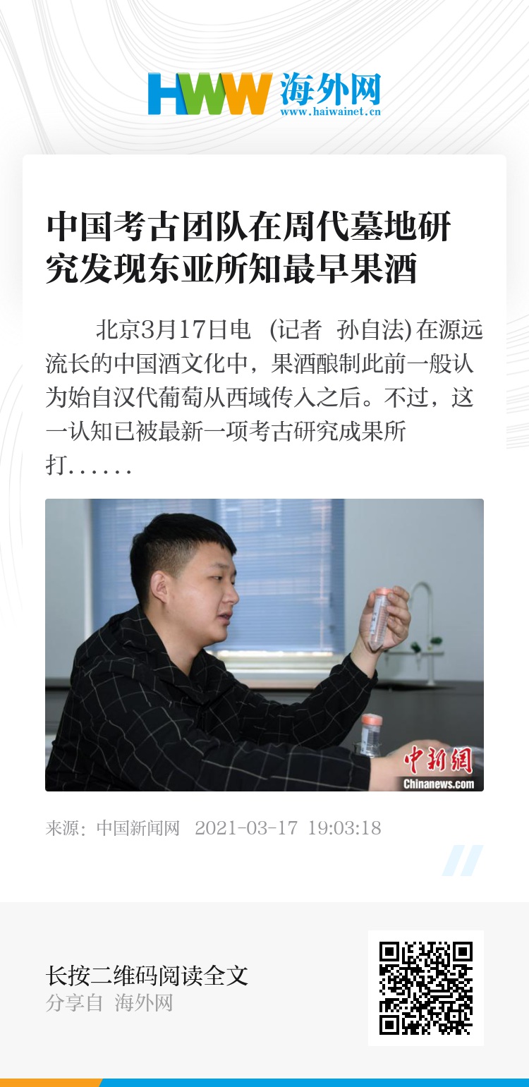 中新网北京3月17日电 (记者 孙自法)在源远流长的中国酒文化中,果酒酿制此前一般认为始自汉代葡萄从西域传入之后。不过,这一认知已被最新一项考古研究成果所打破。